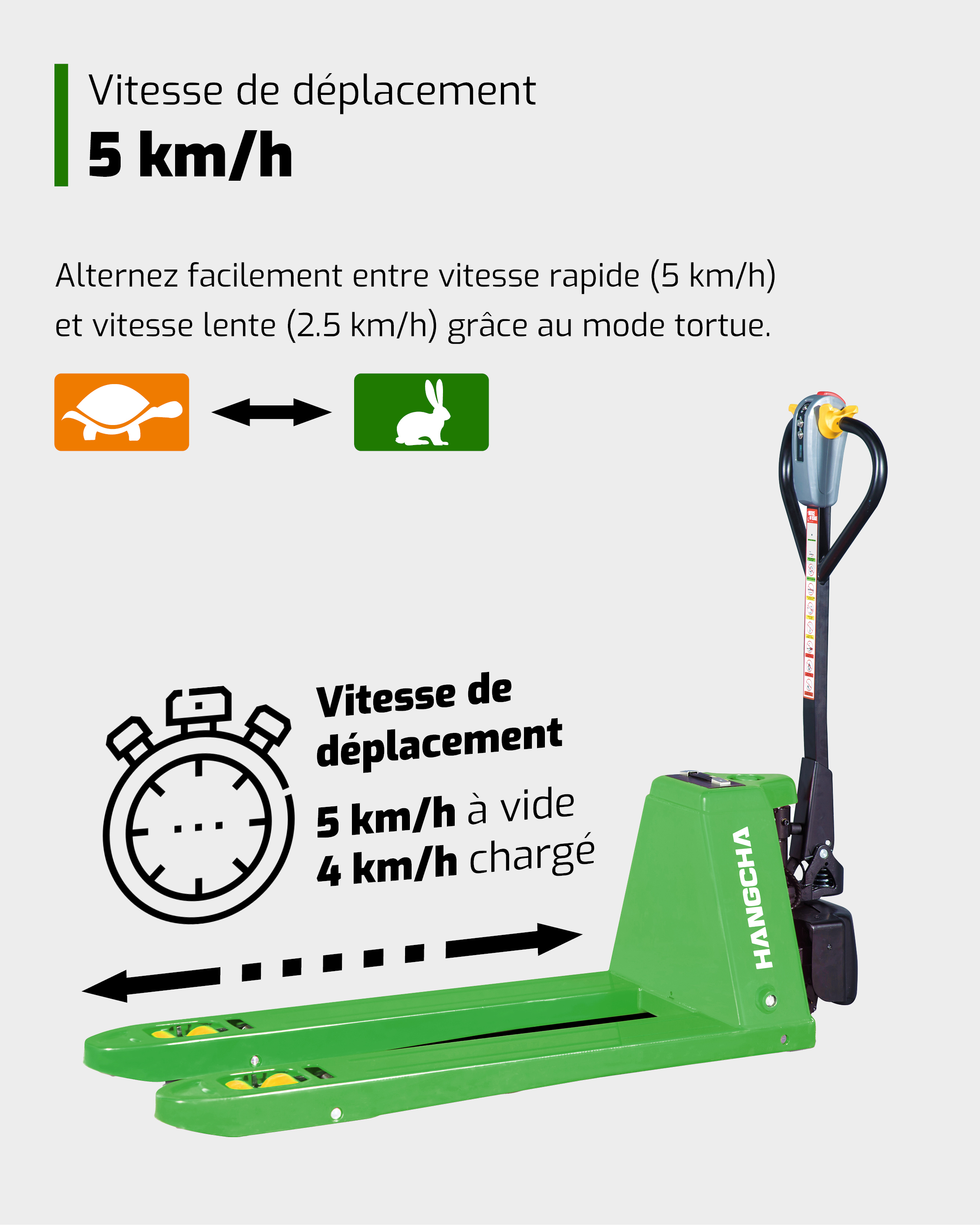 Pour les manœuvres précises dans les espaces confinés, le mode “tortue” permet de réduire la vitesse tout en gardant un contrôle total de la direction et du positionnement, assurant une sécurité maximale pour l’opérateur et les charges transportées.